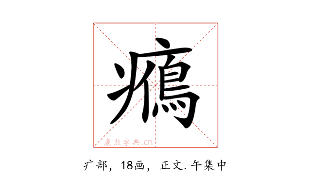 〔𤻉〕字收录于《康熙字典》正文・午集中,康熙部首是疒部。