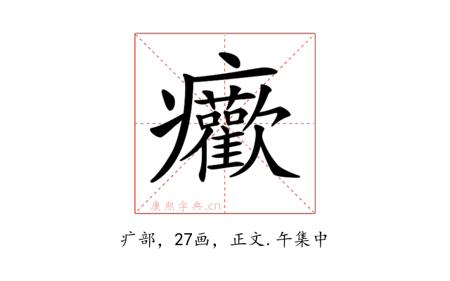 〔𤼢〕字收录于《康熙字典》正文・午集中,康熙部首是疒部。