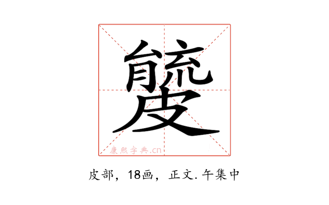 〔𥀧〕字收录于《康熙字典》正文・午集中,康熙部首是皮部。