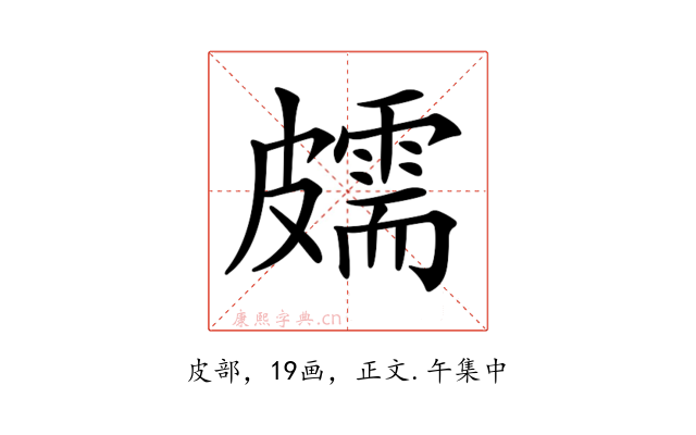 〔𥀭〕字收录于《康熙字典》正文・午集中,康熙部首是皮部。
