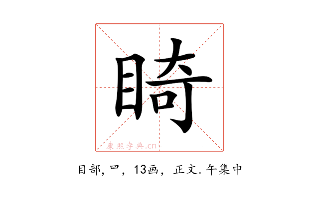 音《廣韻》:去奇切,音崎 —— 目一隻也。