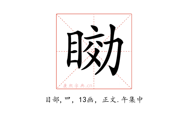 〔𥇟〕字收录于《康熙字典》正文・午集中,康熙部首是目部。