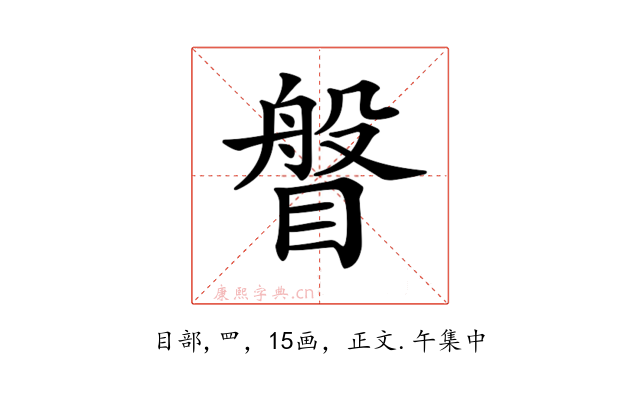〔𥈼〕字收录于《康熙字典》正文・午集中,康熙部首是目部。