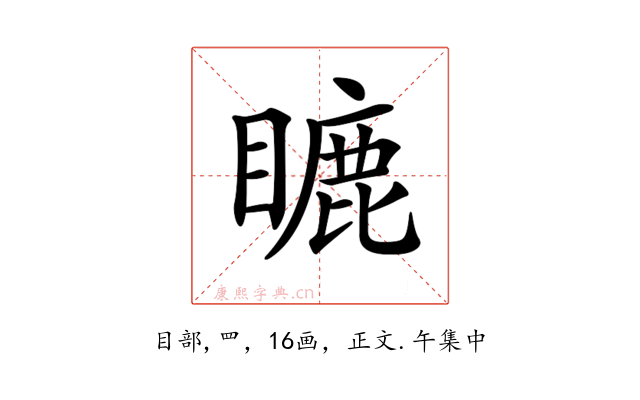 〔𥉶〕字收录于《康熙字典》正文・午集中,康熙部首是目部。