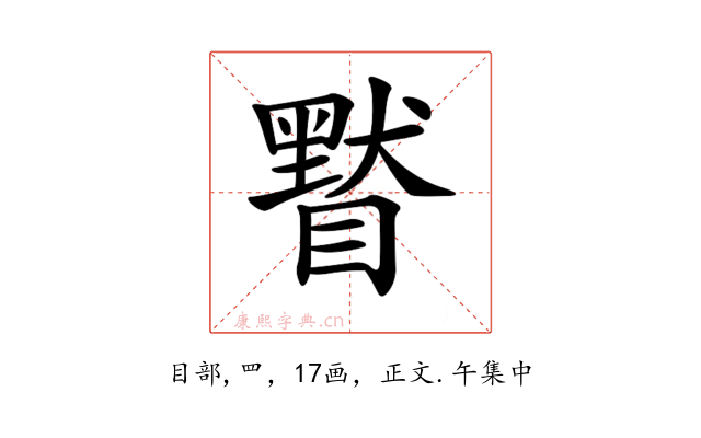 〔𥊷〕字收录于《康熙字典》正文・午集中,康熙部首是目部。