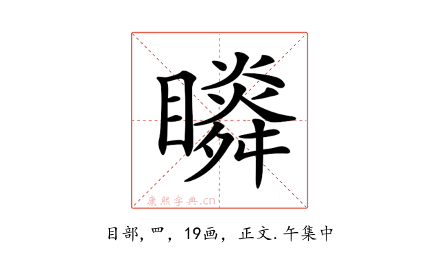 〔𥌌〕字收录于《康熙字典》正文・午集中,康熙部首是目部。