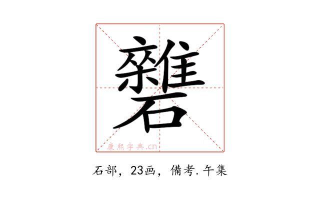 〔𥗱〕字收录于《康熙字典》備考・午集,康熙部首是石部。