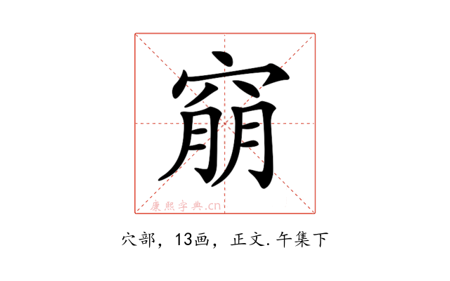 〔𥦜〕字收录于《康熙字典》正文・午集下,康熙部首是穴部。