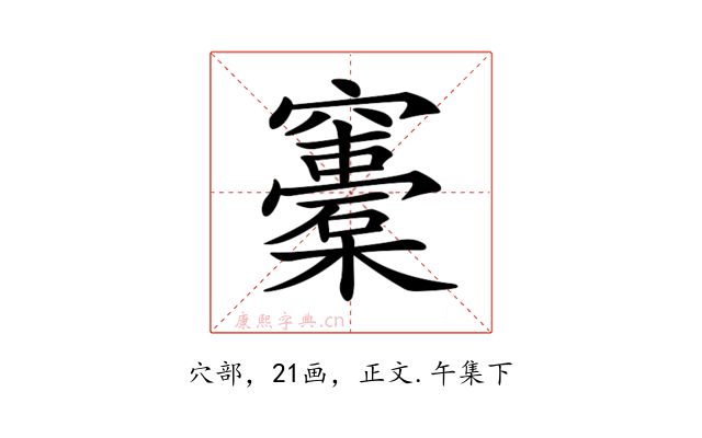 〔𥩀〕字收录于《康熙字典》正文・午集下,康熙部首是穴部。