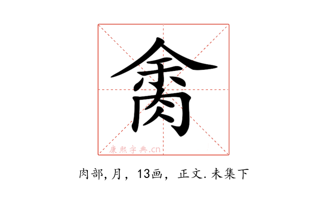 〔𦛝〕字收录于《康熙字典》正文・未集下,康熙部首是肉部。