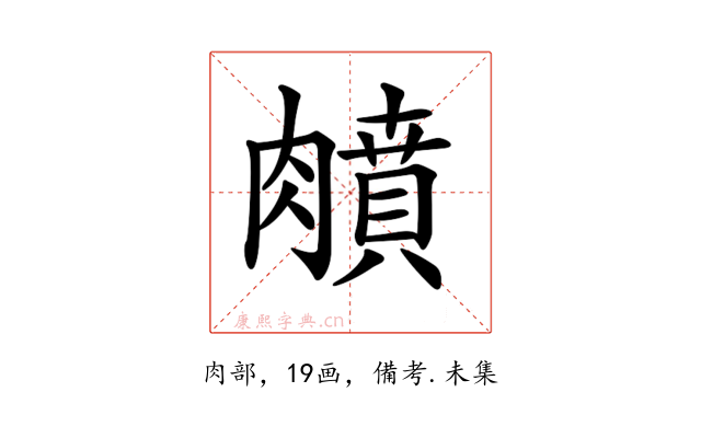 〔𦡛〕字收录于《康熙字典》備考・未集,康熙部首是肉部。