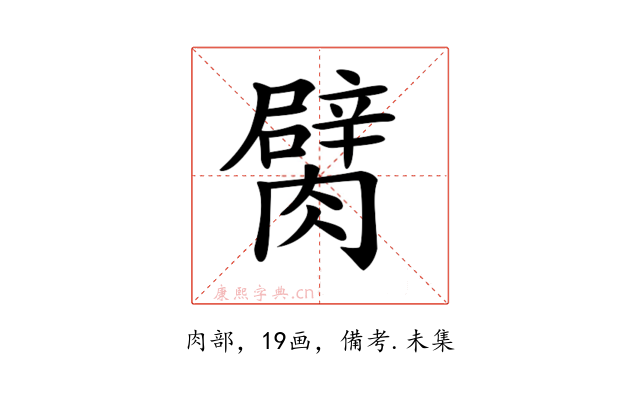 〔𦡜〕字收录于《康熙字典》備考・未集,康熙部首是肉部。