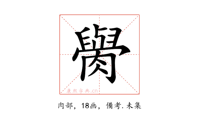 〔𦡭〕字收录于《康熙字典》備考・未集,康熙部首是肉部。