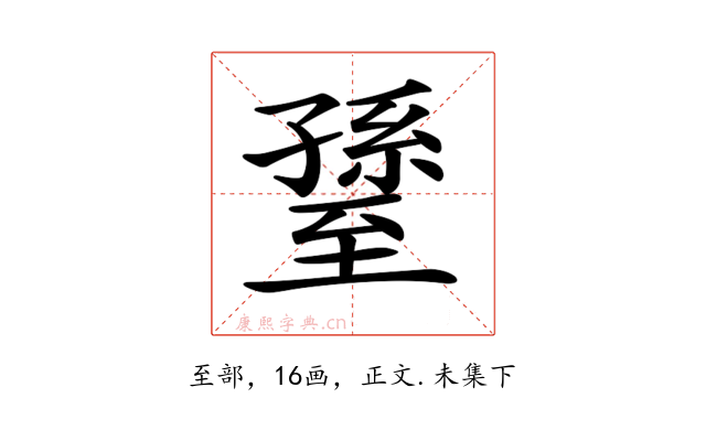 〔𦥊〕字收录于《康熙字典》正文・未集下,康熙部首是至部。