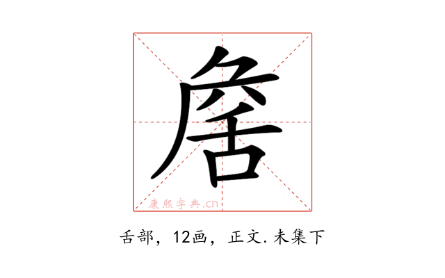 〔𦧕〕字收录于《康熙字典》正文・未集下,康熙部首是舌部。