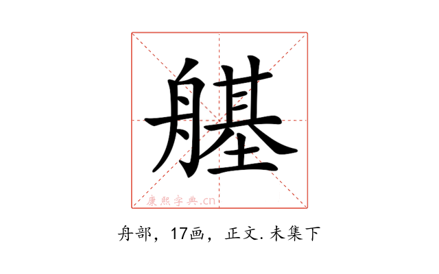 〔𦪆〕字是多音字,拼音是qí、jī,左右结构,可拆字为舟、基。