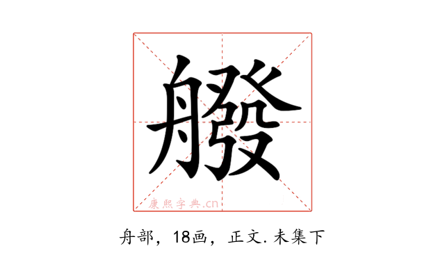 〔𦪑〕字拼音是fá,左右结构,可拆字为舟、發。