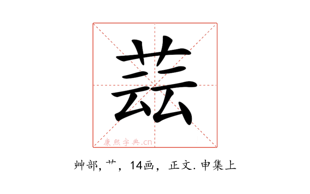 𦱚〕字收录于《康熙字典》正文・申集上,康熙部首是艸部