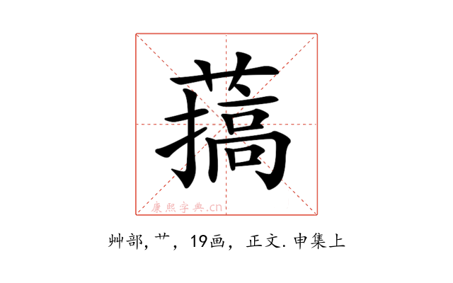 〔𦼸〕字上下结构,可拆字为艹、搞。
