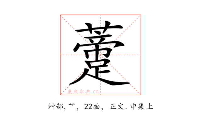 〔𧂨〕字收录于《康熙字典》正文・申集上,康熙部首是艸部。