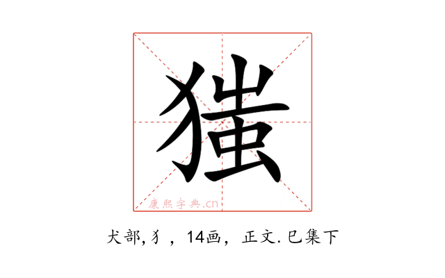 〔㺈〕字收录于《康熙字典》正文・巳集下,康熙部首是犬部。