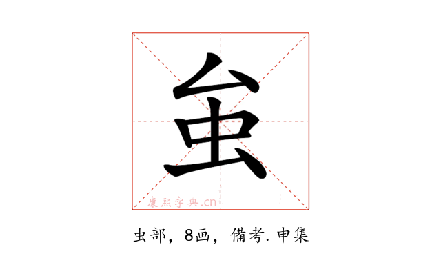 〔𧈧〕字收录于《康熙字典》備考・申集,康熙部首是虫部。