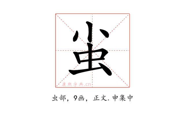 〔𧈨〕字收录于《康熙字典》正文・申集中,康熙部首是虫部。