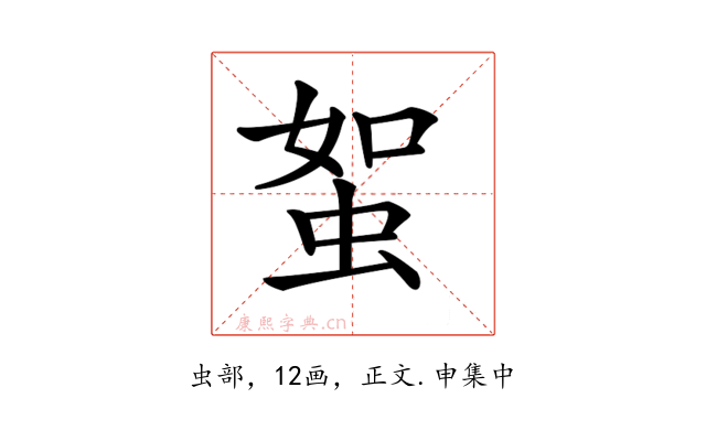 〔𧊟〕字拼音是rú,上下结构,可拆字为如、虫。