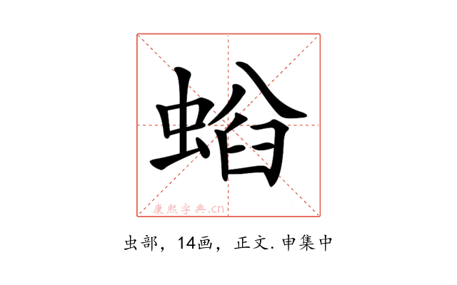 〔𧌤〕字收录于《康熙字典》正文・申集中,康熙部首是虫部。