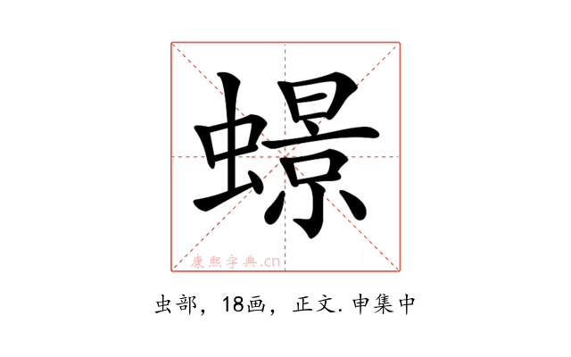〔𧑊〕字拼音是jǐng,左右结构,可拆字为虫、景。