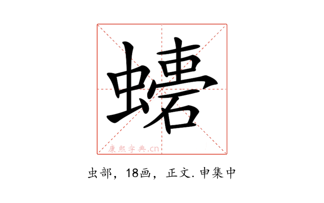 〔𧑠〕字收录于《康熙字典》正文・申集中,康熙部首是虫部。