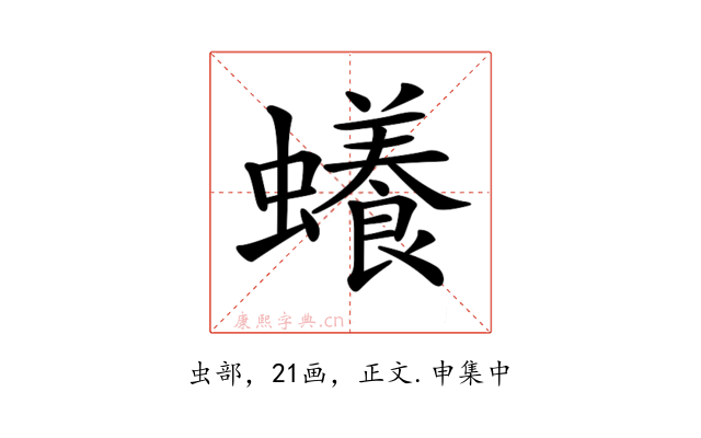 〔𧓲〕字拼音是yǎng,左右结构,可拆字为虫、養。