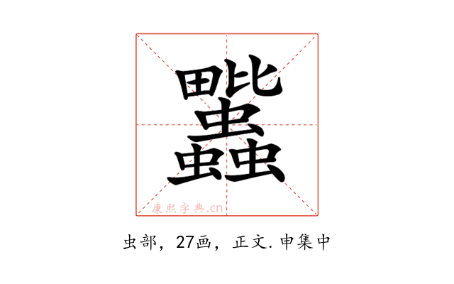 〔𧖈〕字收录于《康熙字典》正文・申集中,康熙部首是虫部。