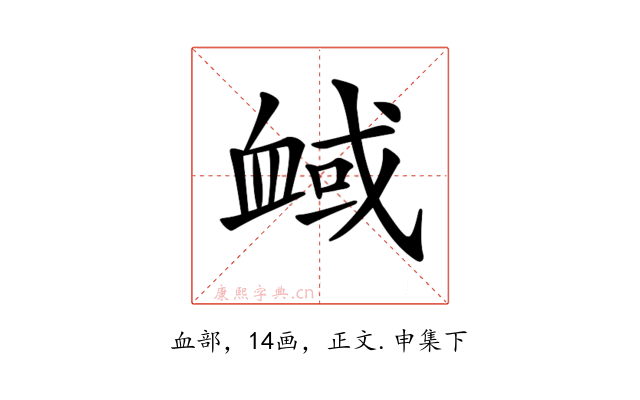 〔𧖻〕字收录于《康熙字典》正文・申集下,康熙部首是血部。