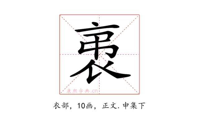 〔𧘨〕字收录于《康熙字典》正文・申集下,康熙部首是衣部。