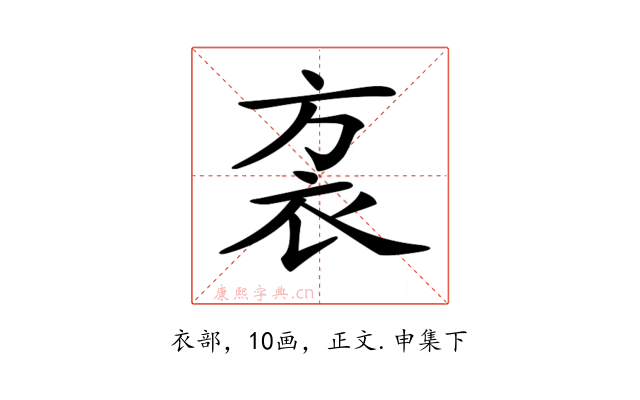 〔𧘩〕字收录于《康熙字典》正文・申集下,康熙部首是衣部。
