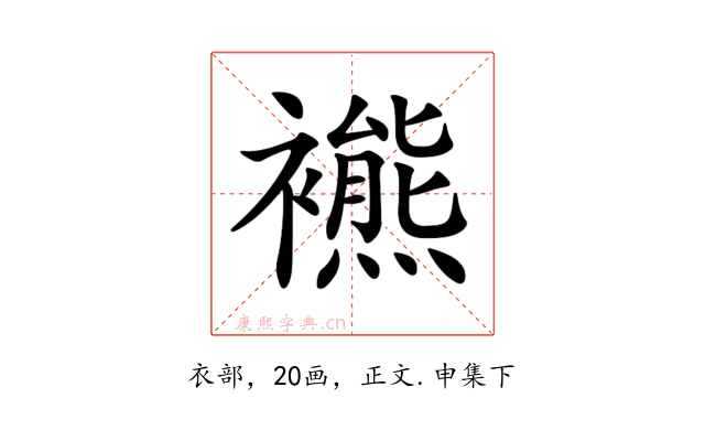 〔𧞞〕字拼音是xióng,左右结构,可拆字为衤、熊。