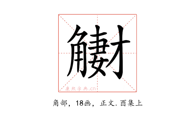 〔𧤳〕字收录于《康熙字典》正文・酉集上,康熙部首是角部。