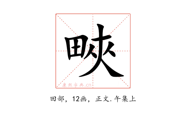 〔㽠〕字拼音是xiá,左右结构,可拆字为田、夾。