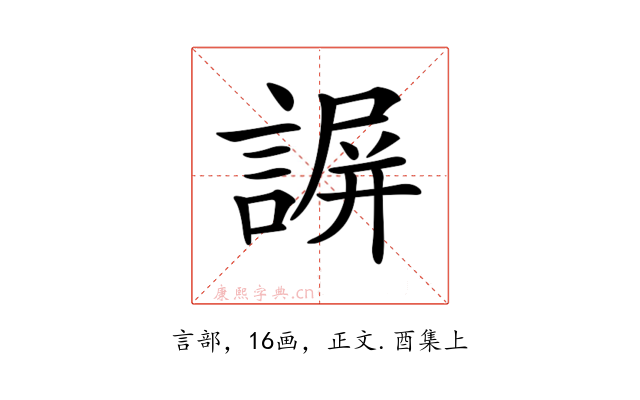 〔𧩱〕字收录于《康熙字典》正文・酉集上,康熙部首是言部。