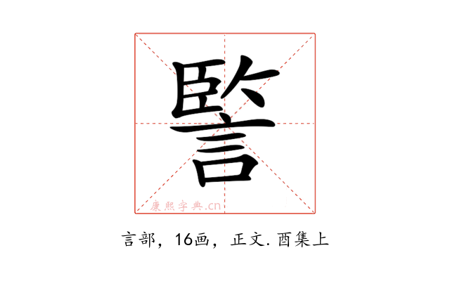 〔𧩾〕字收录于《康熙字典》正文・酉集上,康熙部首是言部。