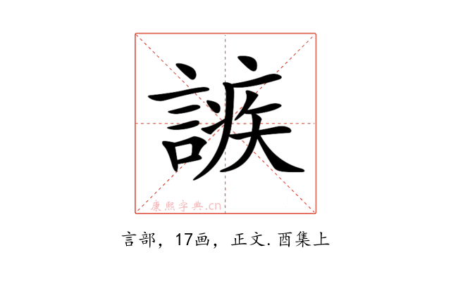 〔𧪠〕字收录于《康熙字典》正文・酉集上,康熙部首是言部。