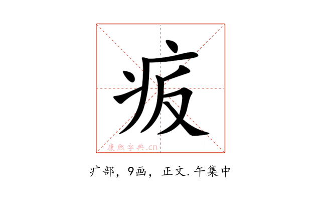 〔㽹〕字收录于《康熙字典》正文・午集中,康熙部首是疒部。