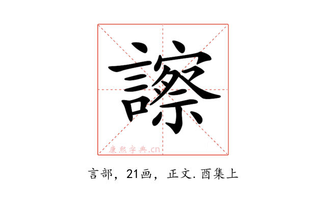 〔𧭂〕字左右结构,可拆字为訁、察。