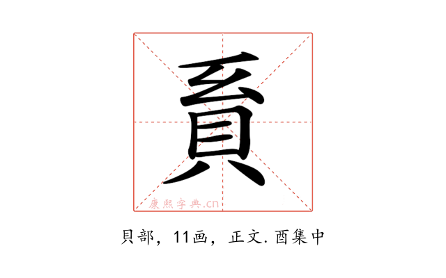 〔𧴺〕字收录于《康熙字典》正文・酉集中,康熙部首是貝部。
