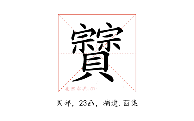 〔𧹆〕字收录于《康熙字典》補遺・酉集,康熙部首是貝部。
