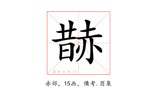 〔𧹨〕字收录于《康熙字典》備考・酉集,康熙部首是赤部。
