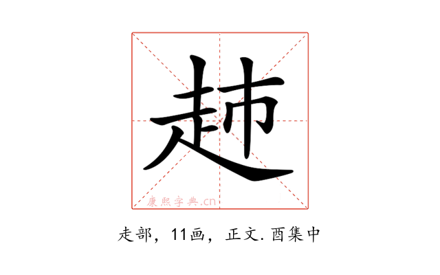 〔𧺡〕字收录于《康熙字典》正文・酉集中,康熙部首是走部。