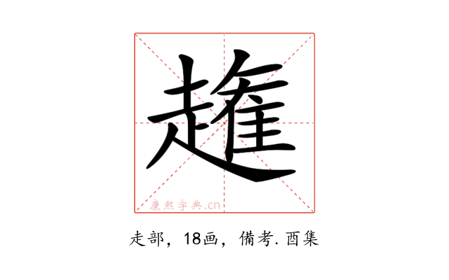 〔𧽳〕字收录于《康熙字典》備考・酉集,康熙部首是走部。
