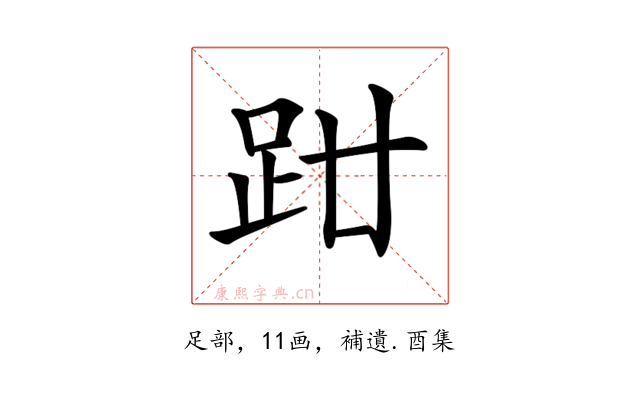 〔𧿰〕字收录于《康熙字典》補遺・酉集,康熙部首是足部。
